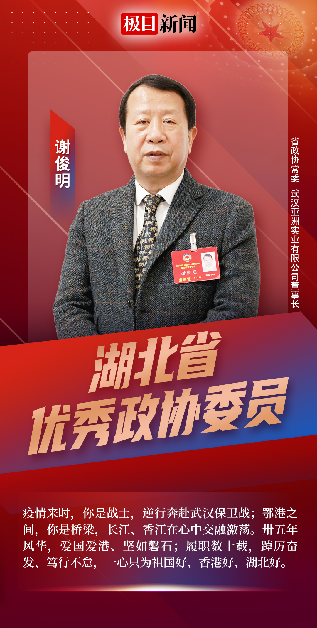 为国履职,为民尽责。他们,努力干出新时代政协委员新样子,为湖北加快“建成支点、走在前列、谱写新篇”积极贡献政协智慧和力量。