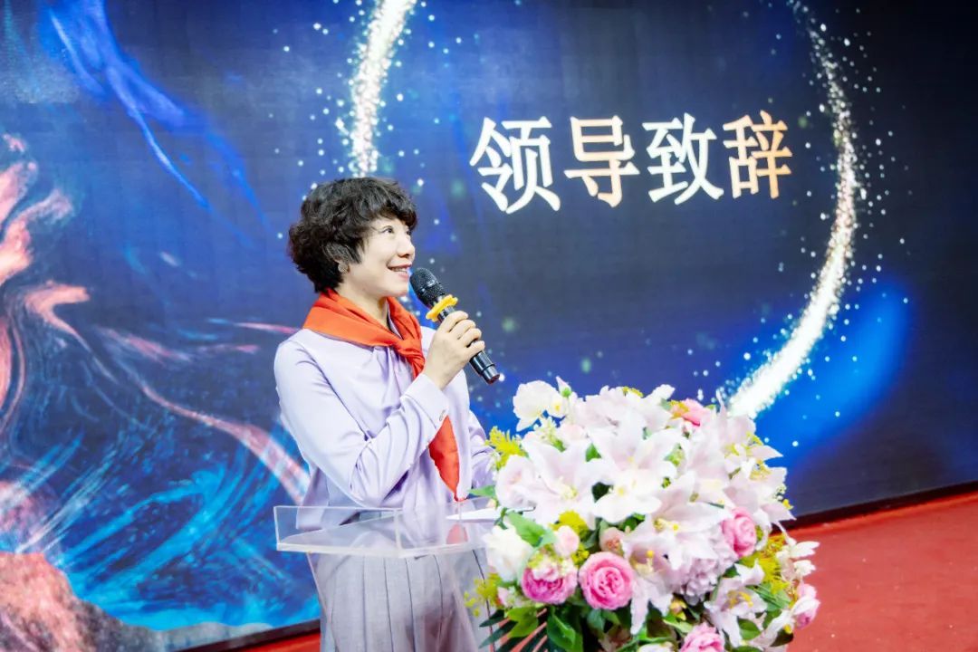 伴着热情的掌声,武汉市妇女事业发展促进会和经开区教育局的领导们步入新城小学,学校六年级优秀毕业生为嘉宾佩戴鲜艳的红领巾。走进新城小学,已感受到浓浓的节日氛围,教学楼前,扎染展区、美术展区展出了孩子们动手创作的工艺品,美术展区内,书法社的师生现场创作折扇;舞台上,古筝表演《少年中国说》《采菊东篱下》、舞蹈表演《AI里的传承》等表演精彩纷呈。