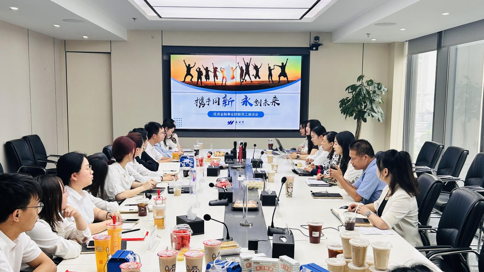 2025年5月27日,永业行投资金融事业群召开“携手同‘新’·‘永’创未来”2025年新员工座谈会,通过搭建交流平台,促进彼此了解,聆听员工心声,塑造团队凝聚力,为2025年入职事业群的新人开启职业旅程的序章。永业行研发副总监、投资金融事业群执行总经理杨凤,投资金融事业群执行董事裴新桃、副总经理郭华、四中心及新老员工代表近40人集聚一堂,畅聊感受,畅谈未来。